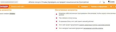 - Уровень доверия к шулерскому сайту alliance-ooo pro по оценке сайта Scamadviser