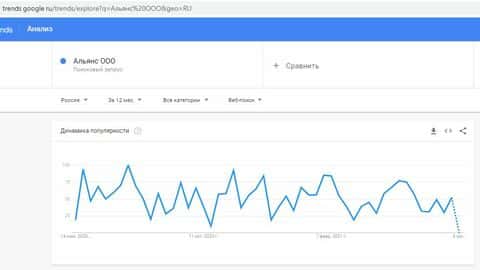 Ниже вы видите динамику популярности в сети Google бренда "Альянс ООО". Но скорее всего, популярность относится к компаниям с похожими названиями, потому что аферисты Альянс ООО закинули свои сети только с декабря.