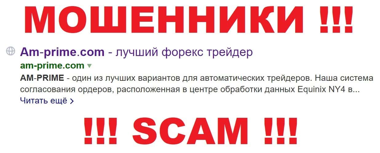 AM Prime - очередной псевдоброкер, который разводит своих клиентов на денежные средства. Фирма старается выставить себя порядочным брокером, но на самом деле это анонимные финансовые мошенники, о которых ничего неизвестно. Фирма не имеет никаких лицензий и юридических документов, по этому, если вам дороги ваши денежные средства и вы не хотите их потерять, то никогда не связывайтесь с данной конторой разводил.
