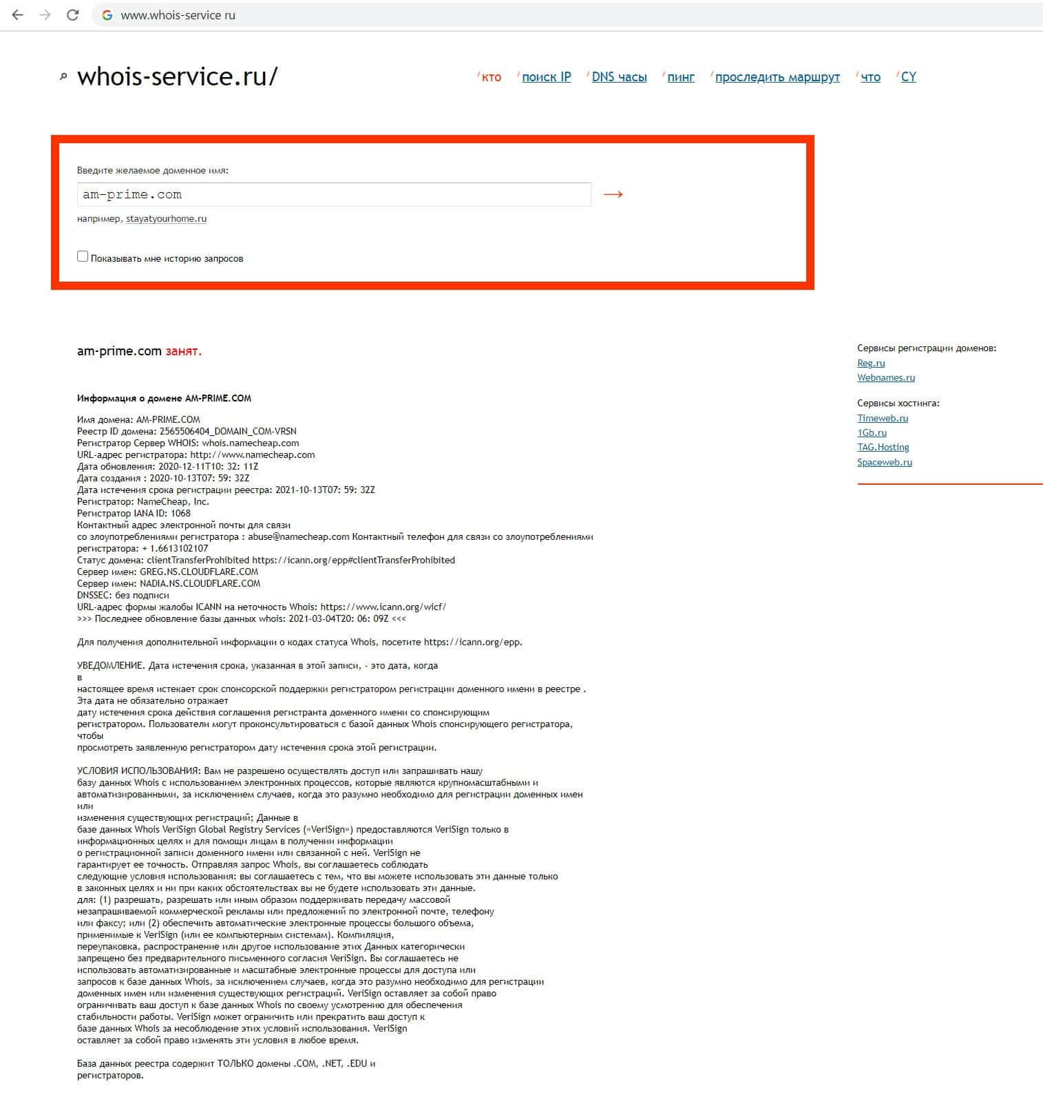 Кому принадлежит доменный адрес конторы жуликов АМ Прайм?