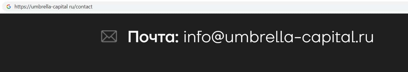 Так же фирма жуликов Амбрелла Капитал указала контактный адрес электронной почты, с помощью которого поддержка лохотрона заманивает пользователей в ловушку. Почта кидал: