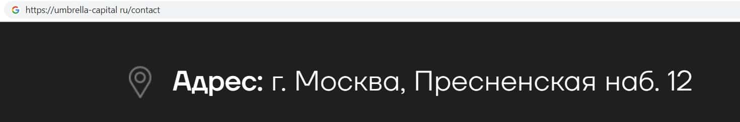 Фирма аферистов Umbrella-Capital Ru так же указала адрес своего офиса, который фирма снимает, чтобы наивные пользователи больше доверяли мошенникам. Адрес разводил: