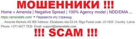 С первого взгляда Аменда ФХ производит впечатление компании солидной. Но реальных отзывов об успешном сотрудничестве от трейдеров в интернете нет, только статья-предупреждение на сайте broker-otzivi ru. То же касается рекламы. Лохотронщики AmendaFX просто ждут случайных посетителей, чтобы ободрать их как липку.