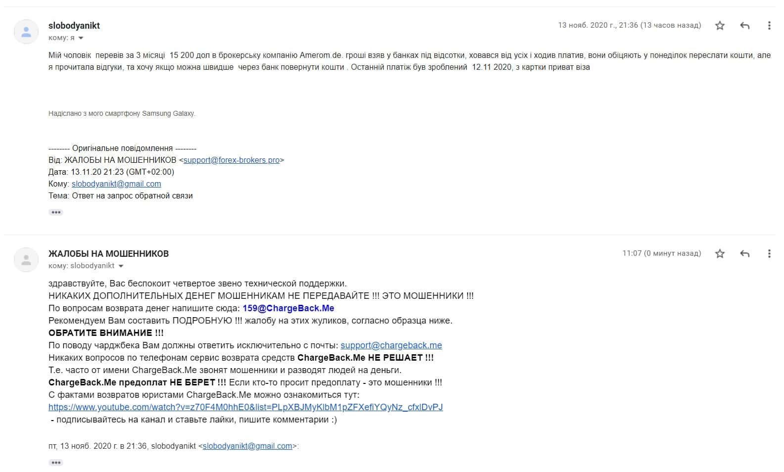 В данном разделе предлагаем увидеть информационный материал в виде жалобы на мошенническую контору Амером, которая обманула клиента на 16 500 долларов США.