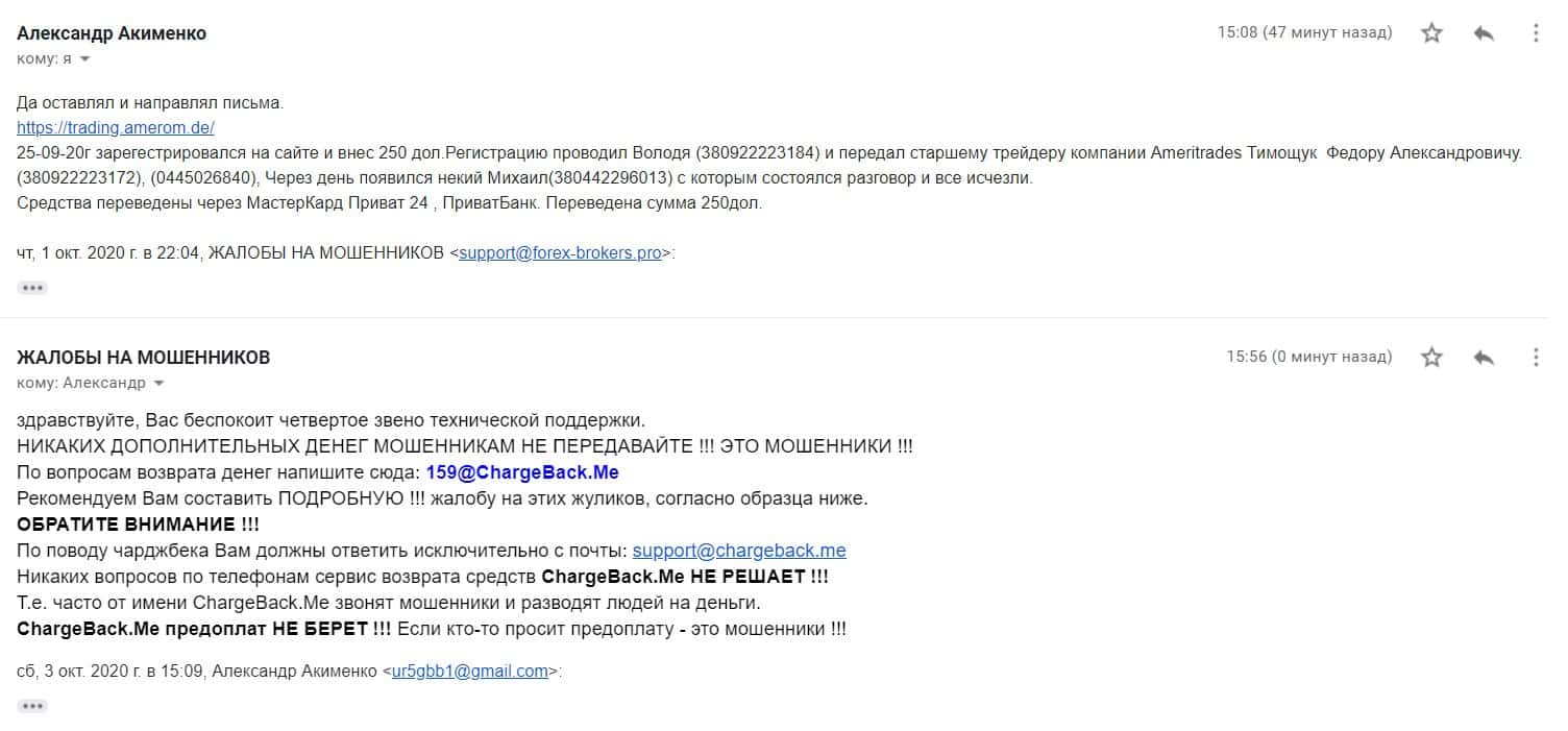 В этом разделе представлен информационный материал в виде жалоба на мошенническую брокерскую компанию Амером Де, которая облапошивает жителей РФ и соседних стран.