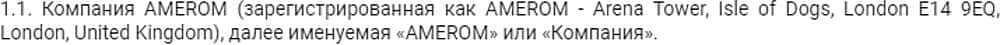 При попытке регистрации в разводняке Амером, появляется соглашение, в котором адрес шарлатанов уже почему-то английский. Вот где еще обитает мутный брокер Amerom De: