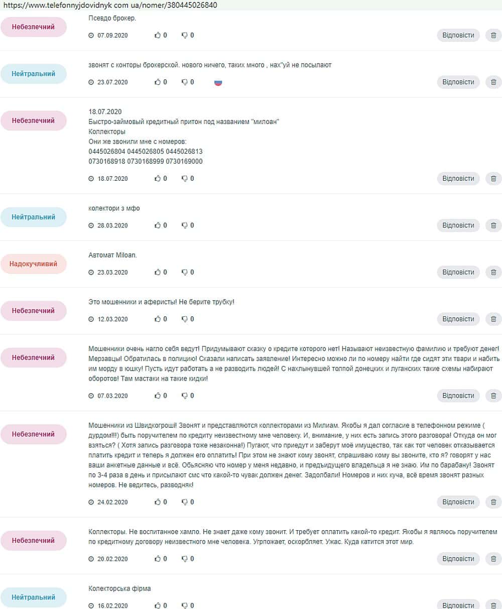 Также данный номер телефона используется кредитным лохотроном Милоан, на который поступает много жалоб. Мухлевщики вешают на людей не существующие кредиты и требуют их.