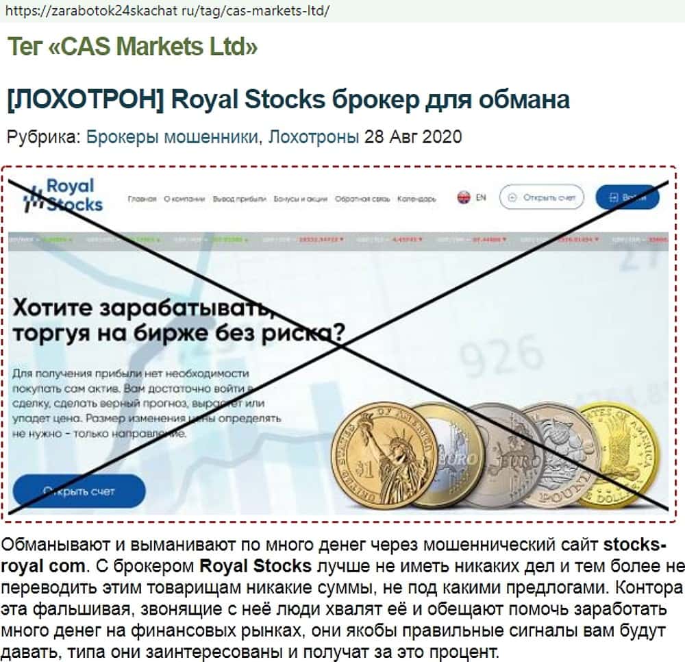 Шарашники CAS Markets Ltd, которые владеют лоховозкой Амером, успели наплодить немало хайп-проектов. Один из них - это кухонный псевдоброкер Роял Стокс, дурящий народ.