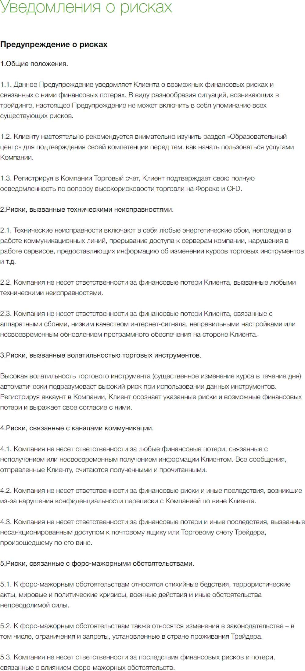 Также обувалово Амером имеет приложение к своему антиклиентскому соглашению. Это так называемое уведомление о рисках. А они здесь имеются, причем практически повсюду.