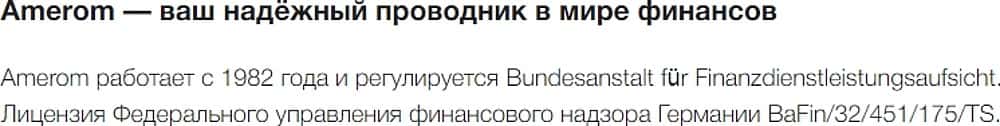 Аферисты Амером утверждают, что их регулятором с 1982 года является якобы орган финансового надзора Германии. Даже привели какой-то номер для большей убедительности.