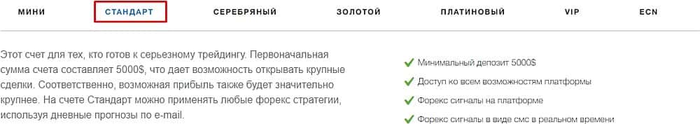 Счет Стандарт мало чем отличается от предыдущего. Жулики правда обещают его владельцам информировать о сигналах посредством электронной почты и смс-сообщений.