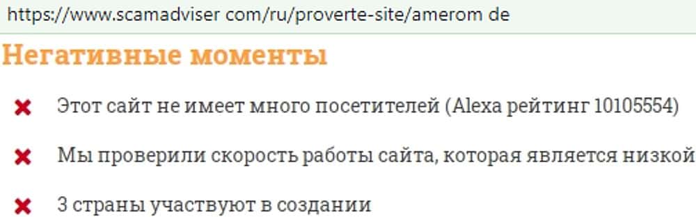 Жалоба на Amerom De от очередного пострадавшего клиента