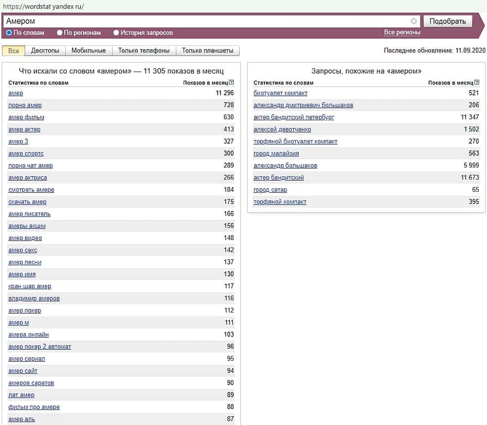 wordstat yandex ru - онлайн-служба для анализа популярности запросов от Яндекс