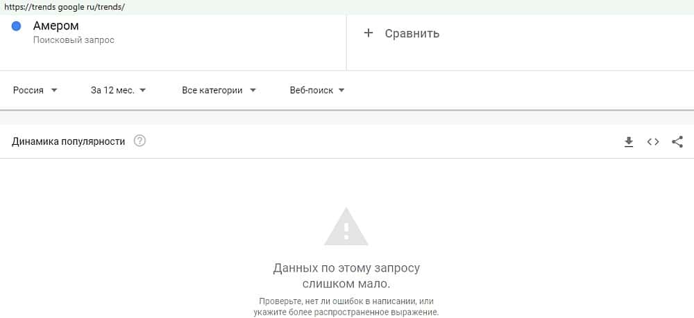 Статистика популярности названия кухни "Amerom" по миру оказалась не нулевой, но есть доля вероятности, что пользователей Google Ru интересовало что-то иное с похожим брендом.