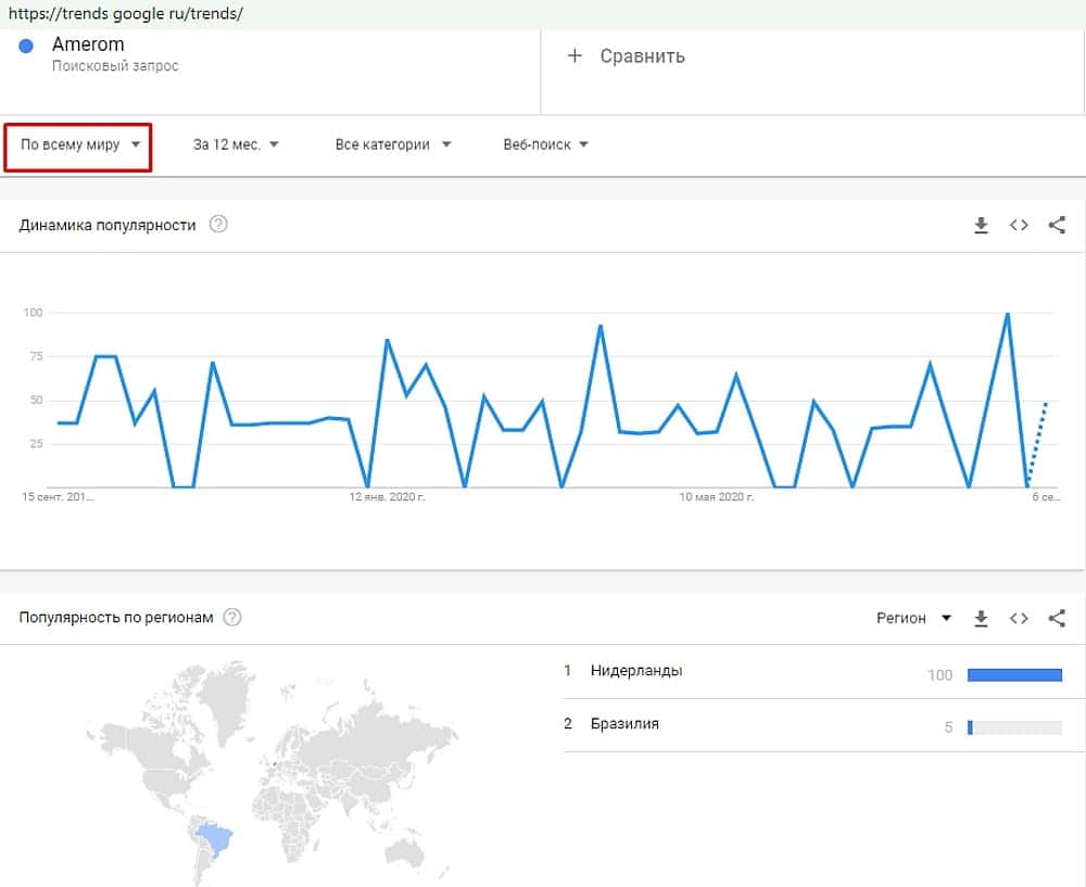 Кириллическая транслитерация мошеннического бренда "Амером" также не вводилась в поисковую строку аудиторией, которая предпочла поиск Google Ru, другим подобным сайтам.