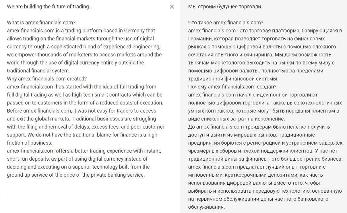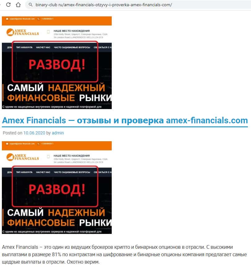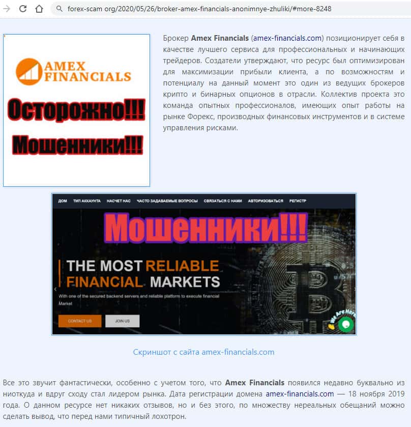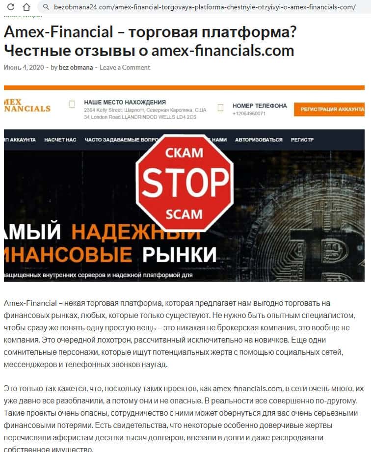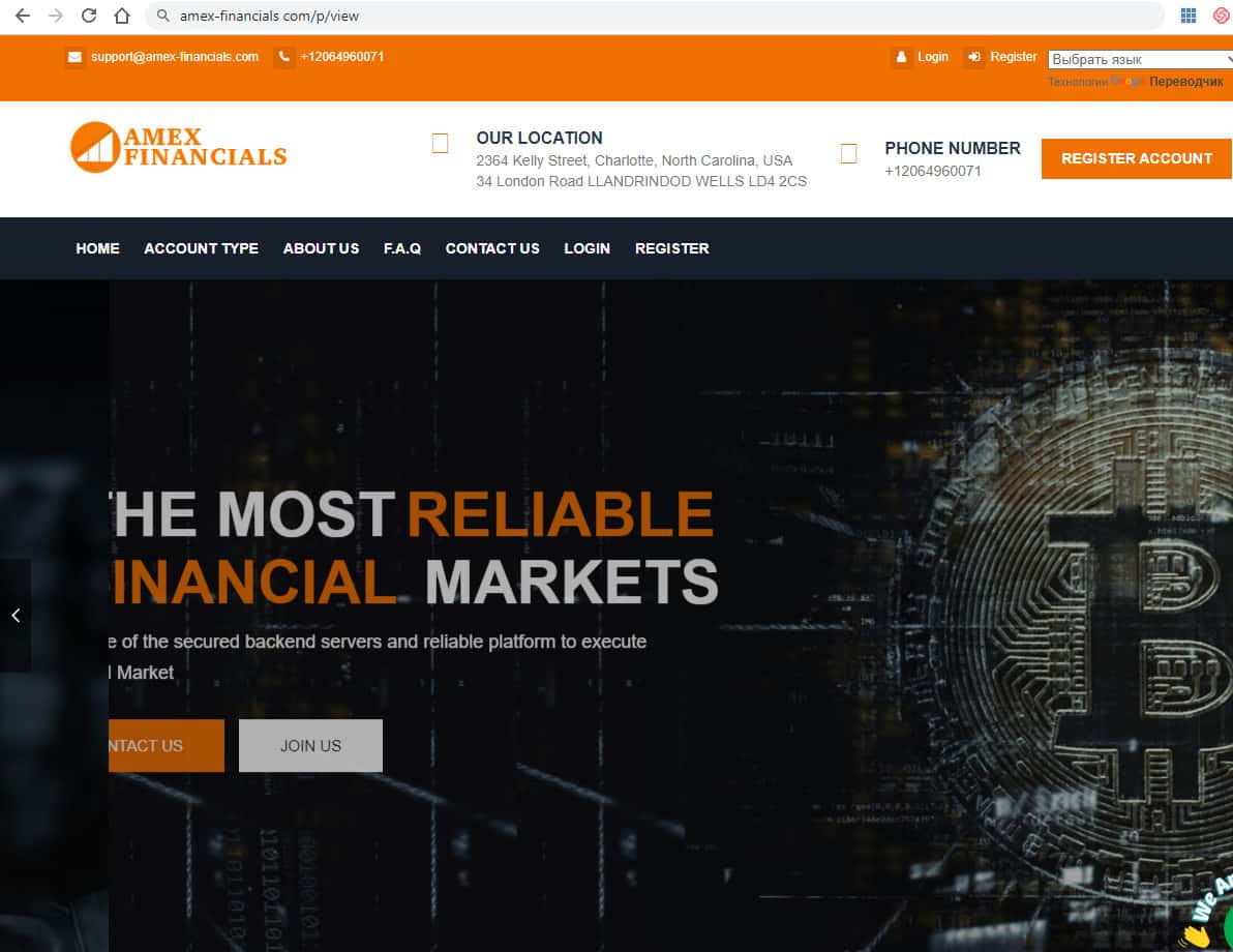 - Контора Amex Financials - это не платформа для торговли, а жульнический проект