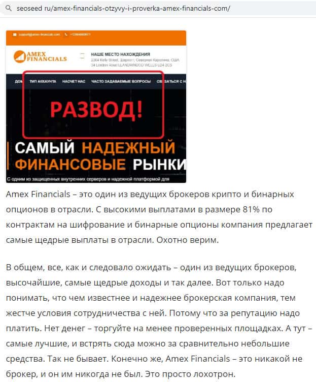 Мнение автора статьи о мошенниках Амекс Файненшилс