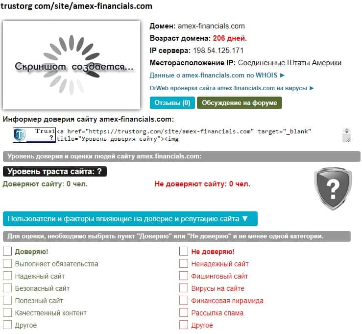 С сайта "Доверие в Сети" удалены все оценки работы мошеннической конторки Амекс Файненшилс