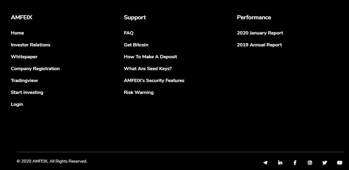 Завершается же подвальный сайт у аферистов AMFEIX довольно типичным перечнем ссылок на различные разделы сайта мошенников, которые расположены без каких-либо других информационных записей о конторе мошенников Амфеикс. На изображении, расположенном ниже, вы можете наглядно увидеть как завершается подвальный сайт проходимцев AMFEIX.