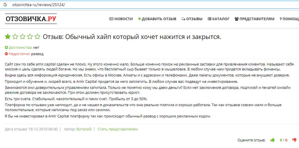 - Отзыв о типичной пирамиде Amir Capital