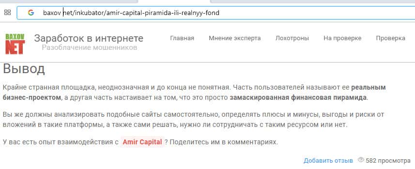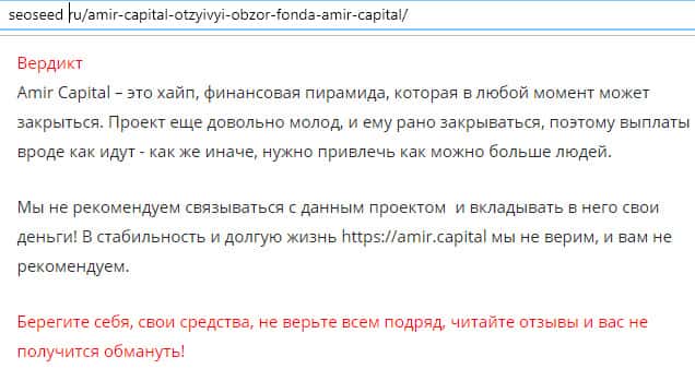 Отзыв о типичной пирамиде Amir Capital