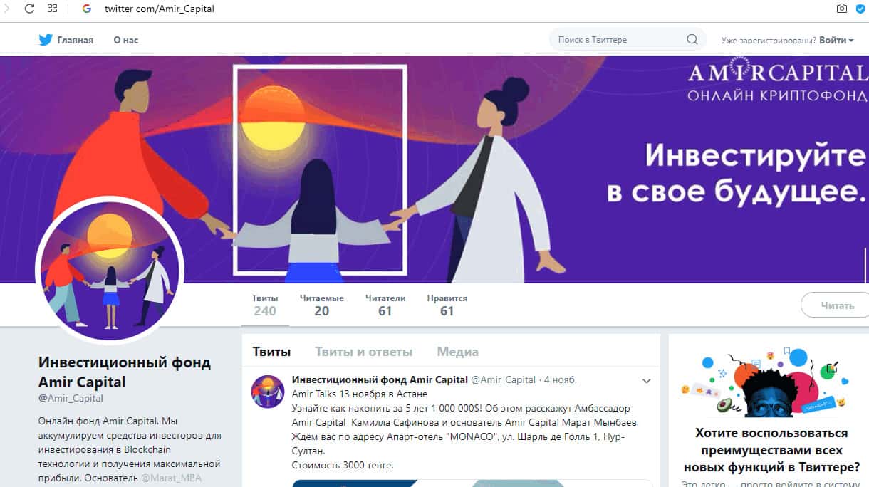 - аккаунт в Твиттер twitter com/Amir_Capital