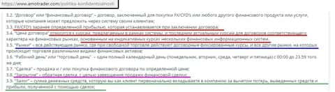 Если клиентский договор компании Амотрейдер изобилует нужными, ненужными и бессмысленными формулировками, иногда противоречащими друг другу и здравому смыслу, то документ "Политика возврата средств" кажется лаконичным, лишенным формулировок и определений. Также этот документ лишен и конкретики - смысл предложений может трактоваться любым образом, удобным компании.