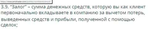 Компания Амотрейдер использует понятие залог в ранее неизвестном смысле в брокерской среде