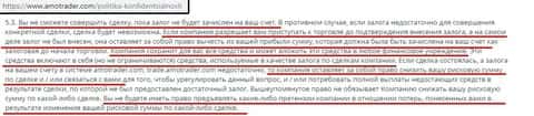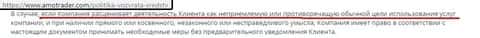 В договоре компания Амотрейдер прямым текстом заявляет, что по прихоти любой депозит может быть заморожен