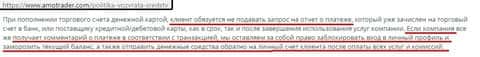 Политика возврата средств компании Амотрейдер туманна и не содержит никакой конкретики
