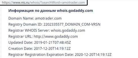 Сайт компании Амотрейдер был создан в декабре 2017 года. Это можно проверить бесплатно и без регистраций на любом хостинге доменных имен благодаря сервису WHOIS. Сайт принадлежит компании Alliax Commerce Inc.. Это важный момент и к нему мы еще вернемся.