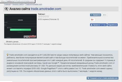 Даже если допустить, что до этого эти трейдеры были знакомы с компанией-владельцем этого сайта и имели о ней хорошее впечатление, то все равно это никак не могло быть перенесено на только что возникший Амотрейдер.