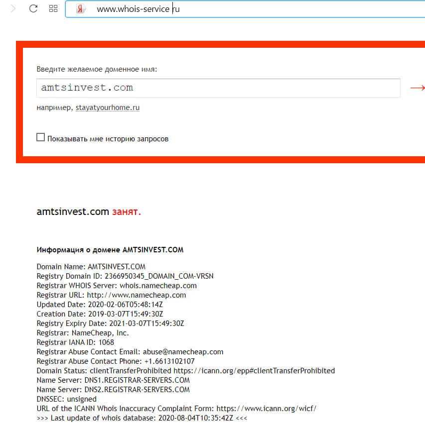 Кому принадлежит доменное имя сайта amtsinvest com?
