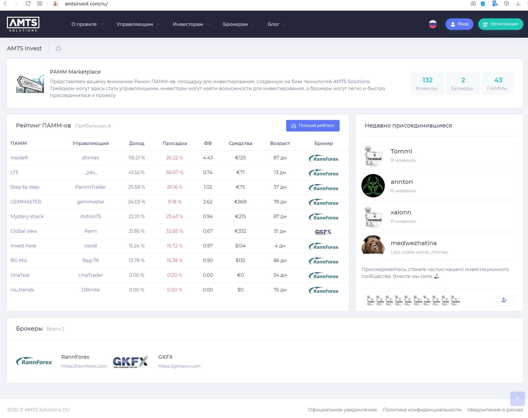 - Показатели сайта инвестиционной компании АМТС Инвест