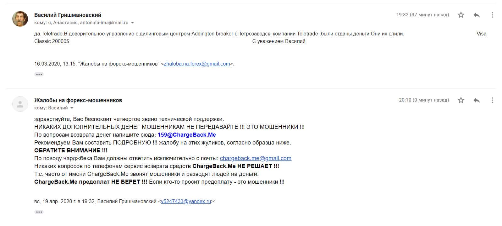 Далее представлено письмо от человека, который попался в контору AC Addington через рекламу лохотрона Теле Трейд. Мошенники втерлись к нему в доверие и выманили порядка 20 000 долларов США, и теперь он просит помощи вернуть ему краденные средства. Жертва готова поделиться информацией со всеми.