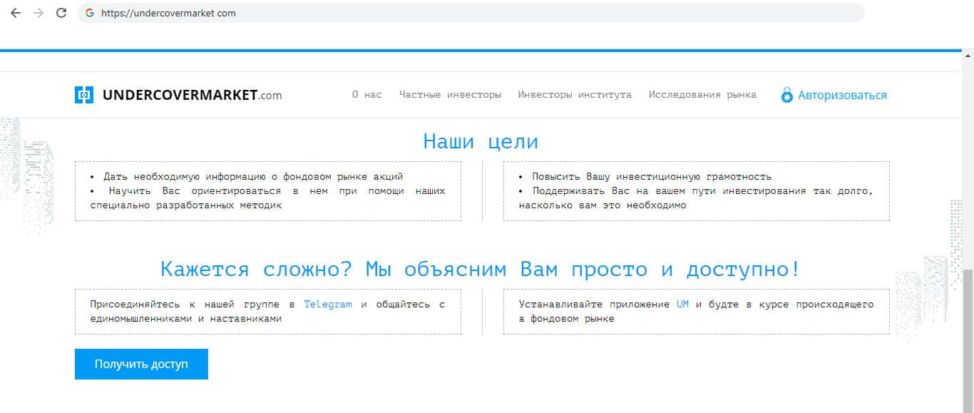 Далее мошенники предоставили список своих услуг, которые они якобы предоставляют клиентам. Махинаторы UnderCoverMarket предлагают информацию о фондовом рынке акций, Предлагают научить ориентироваться в фондовом рынке, так же предлагают повысить инвестиционную грамотность, и поддерживать на пути инвестирования.