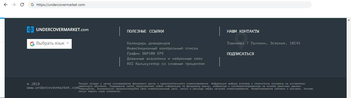 Вторым пунктом сайта махинаторов UnderCoverMarket идёт пункт с рисунком графиков, и некой информацией, в которой аферисты заставляют пользователей забежать наперёд и задуматься о пенсии, где призывают не работать а все деньги инвестировать в компании США, и тогда будет счастье, но вот только клиенты инвестируют в мошенников не больше.