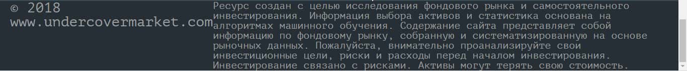 На своём главном интернет ресурсе компания мошенников UnderCoverMarket предоставила некое подобие предупреждения о рисках. В нём идёт речь о том, что компания не несёт ответственности за все действия инвестора, так как сайт компании несёт исключительно информационную функцию, но на сайте указанно, что контора будет давать чёткие инструкции.
