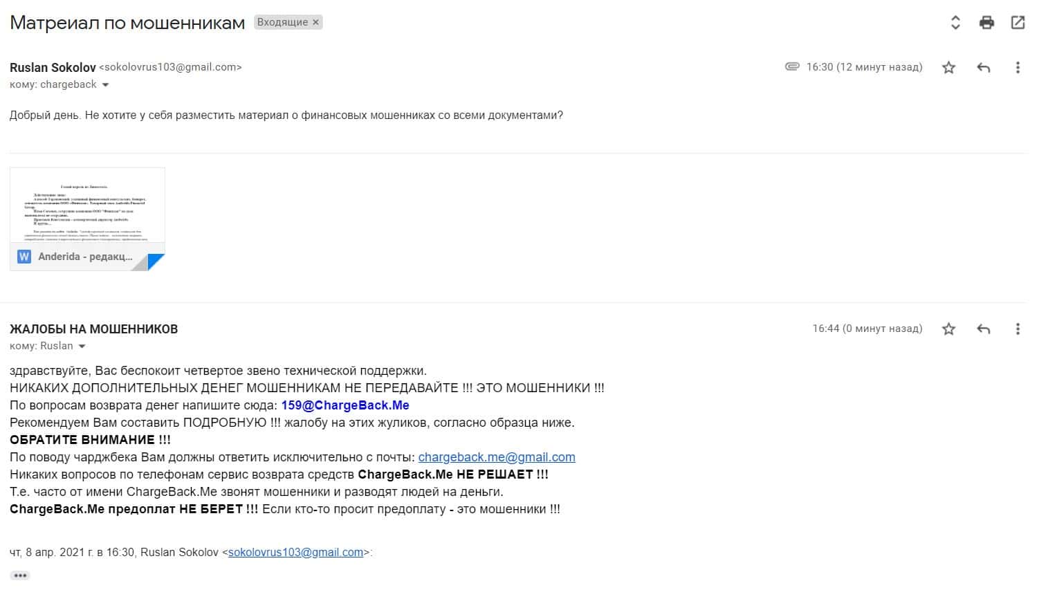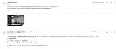 Еще один адрес электронной почты жуликов Андерида, куда вы можете попробовать им написать, если они ответят:
