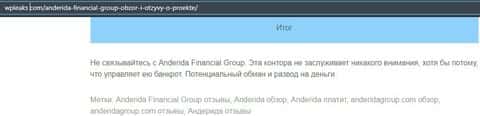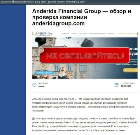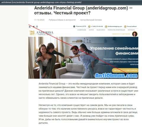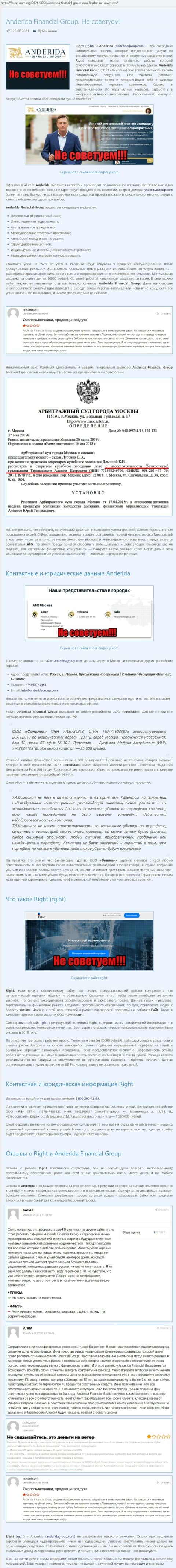 Далее представлена информация о лохотроне Андерида, где призывают автора статьи, чтобы люди не связывались с ним. Контора много о себе скрывает, поэтому доверия к ней нет.