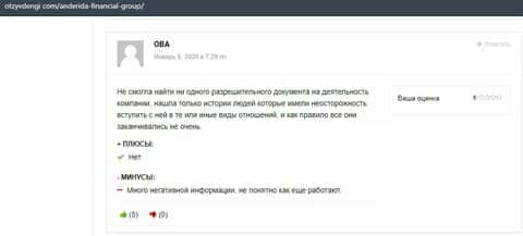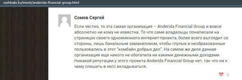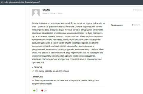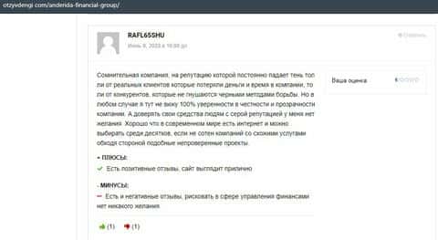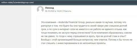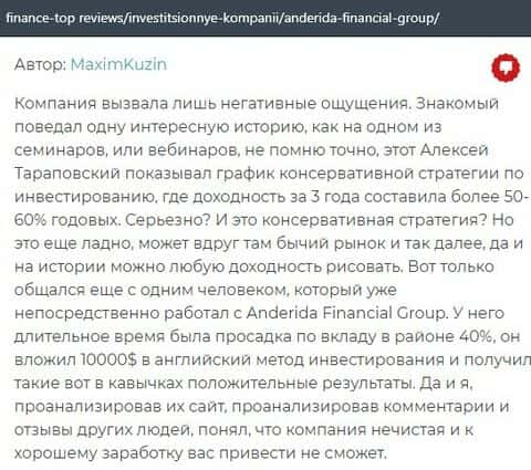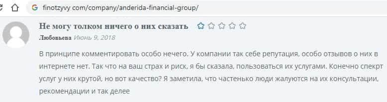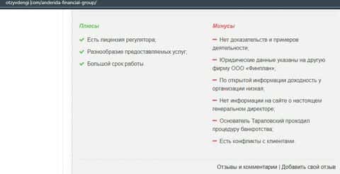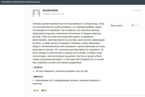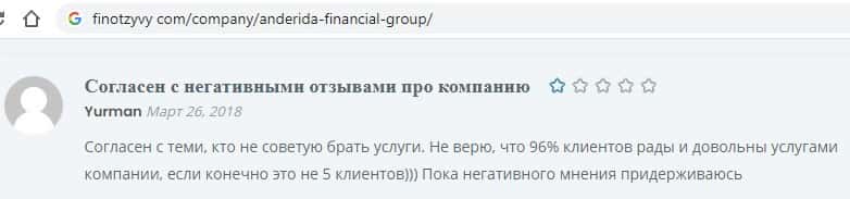 Ниже вы можете ознакомиться с негативными моментами касательно деятельности конторы Андерида. Как вы видите лохотрон имеет намного больше минусов нежели плюсов.
