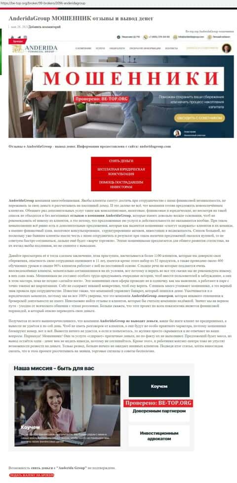 Далее предлагаем ознакомится с подробным обзором мошеннической организации Андерида, который был создан сайтом-разоблачителем Be-Top Org.