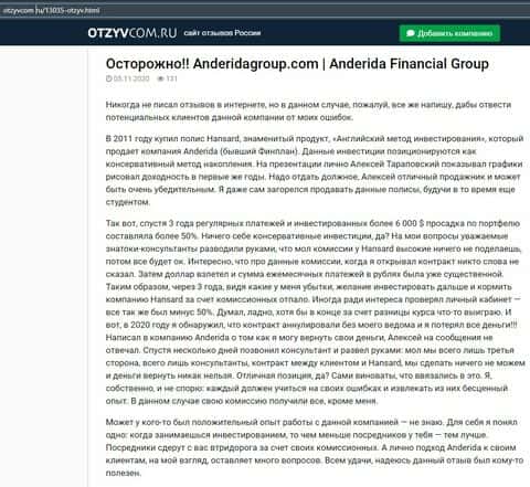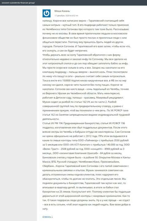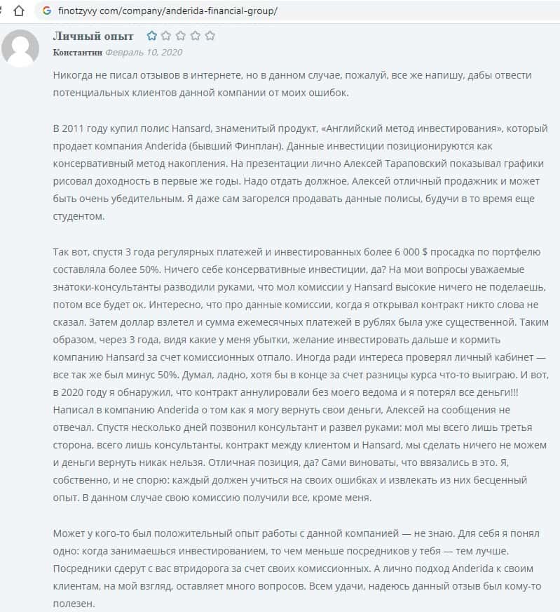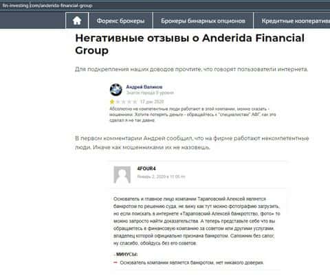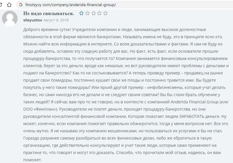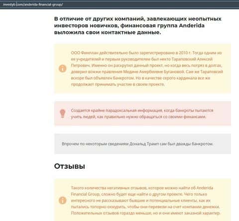 Далее представлены все факты того, что конторе Андерида опасно доверять. По тексту отзыва видно, что там работают такие персонажи, которые довели себя до банкротства.