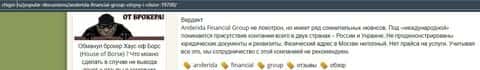 По мнению автора следующей статьи, контора Андерида мало раскрывает о себе информацию. Скрывает юридические документы, поэтому рекомендуют обходить ее стороной.