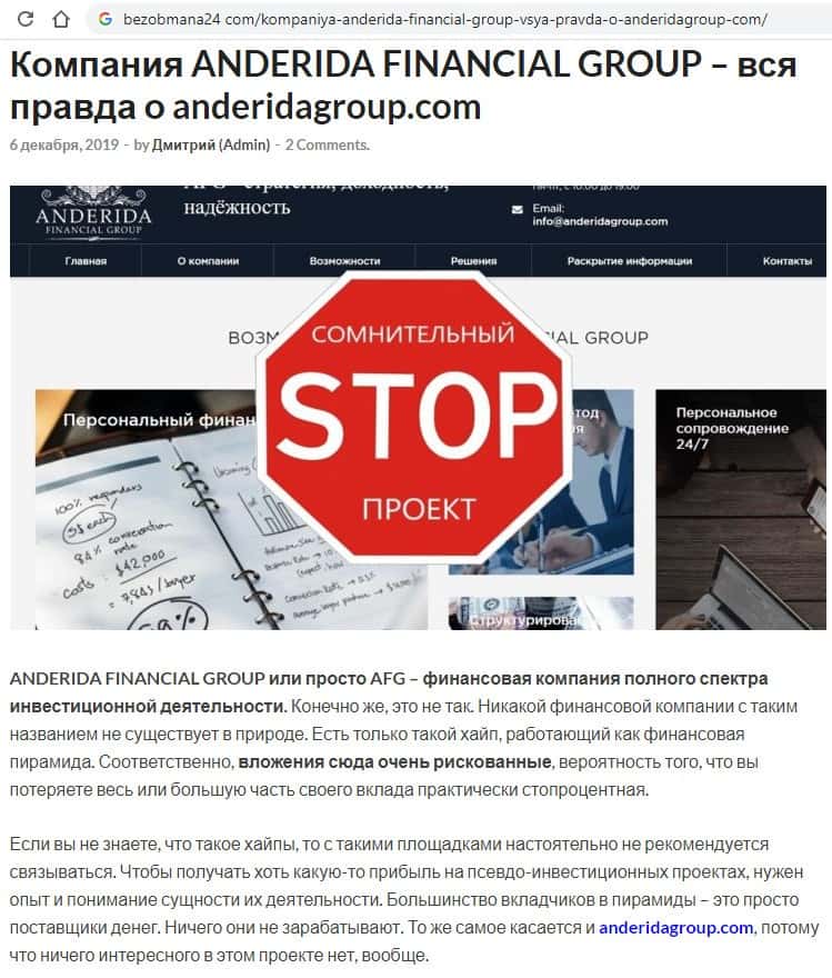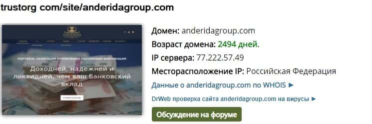 Anderidagroup com - официальный домен мошенников AnderidaGroup