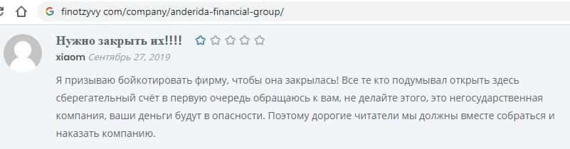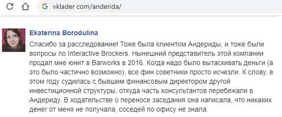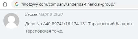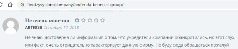 Еще один клиент подмечает, что Андерида являются просто банкротами и эта информация подтверждена в интернете. Так что это говорит о многом, что с ними связываться нельзя.