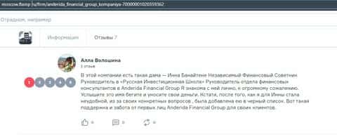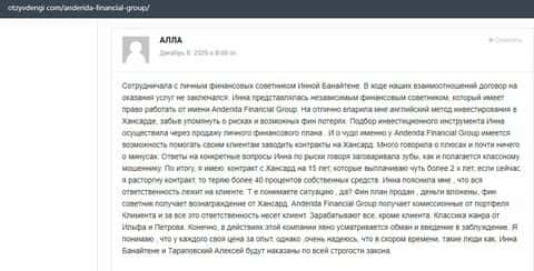В данном отзыве вскрыли одного из менеджеров конторы Андерида. Ее зовут Инна Банайтене, которая выступает в качестве советника и опрокинула уже не мало людей.