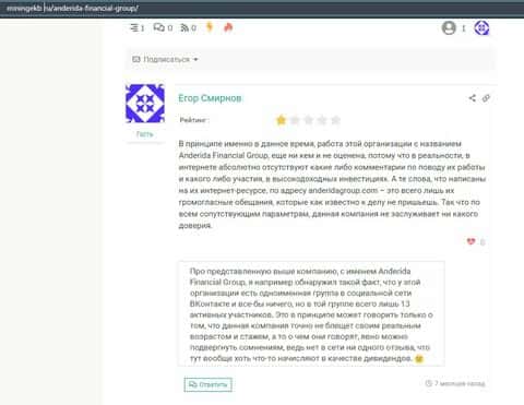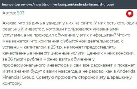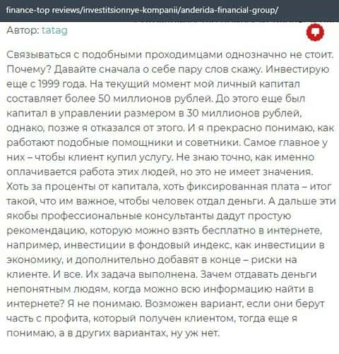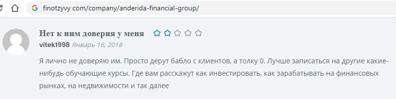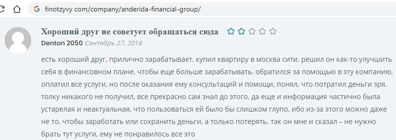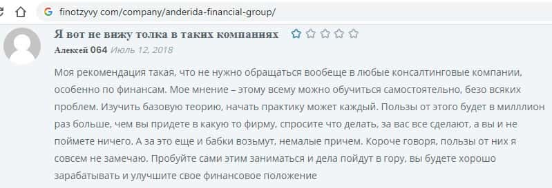 Конторе AnderidaGroup нельзя доверять и об этом пишет еще один пользователь сети. Мошенники сами не могут ничего заработать, о каких рекомендациях и советах можно говорить.