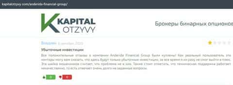 В данном материале описывается информация касательно негативных отзывов в интернете о дилинговой кухне Андерида. Люди не доверяют ей так как она разводит клиентов на деньги.
