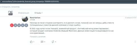 Очередной клиент утверждает, что конторе Андерида доверять свои деньги нельзя, иначе вы потеряете все деньги. Работа их специалистов-аналитиков не выдерживают никакой критики.